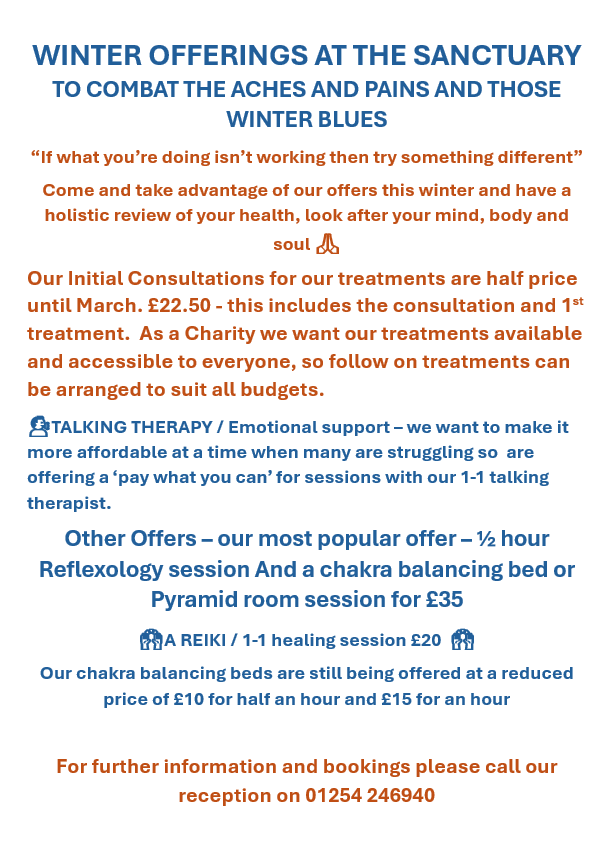 An opportunity has arisen here at The Sanctuary of Healing Therapy floor for a Holistic Therapist.